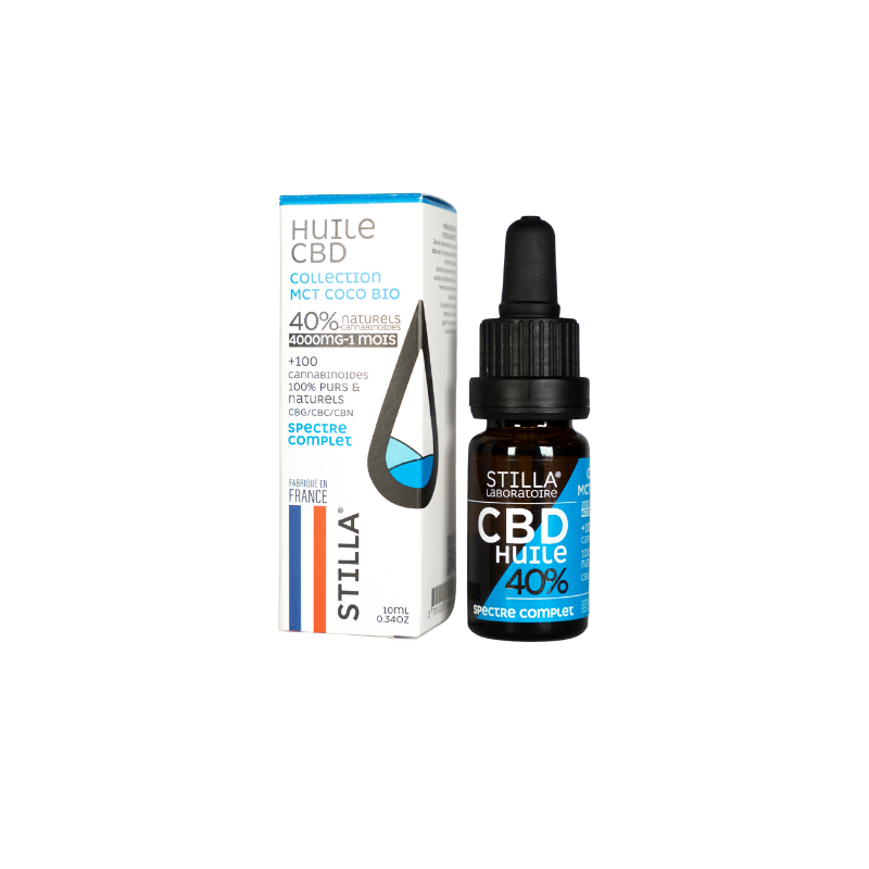 Imaginé et Fabriqué en France. Huile CBD 40% MCT Coco Bio | 4000mg – THC < 0,2% – Full spectrum – Innovation STILLA®