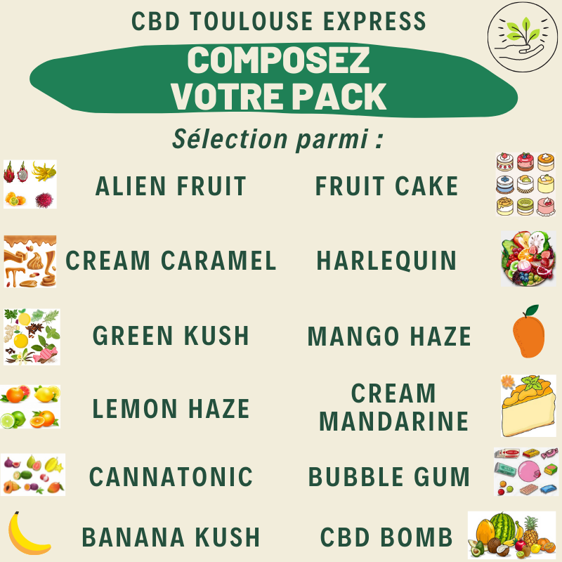Composez votre pack entre les variétés fruitées, sucrées, acidulées et épicées du CBD Toulouse Express :